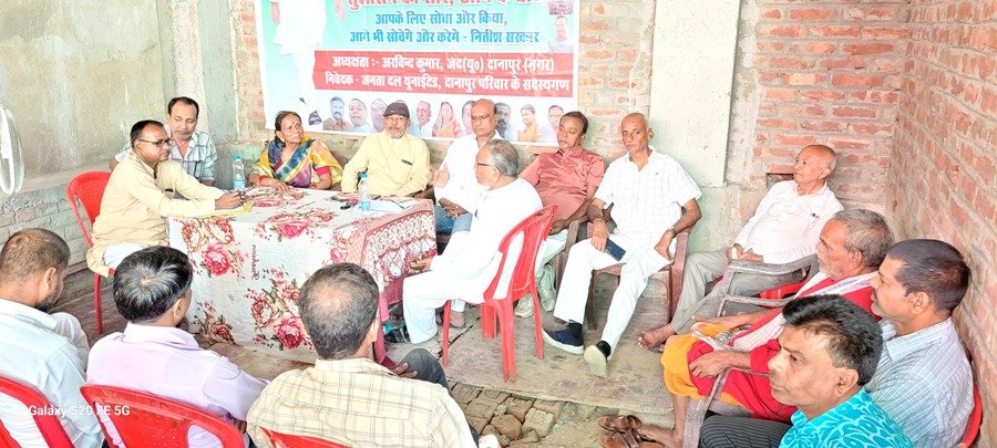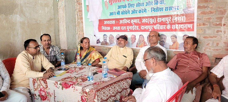 मंगलवार को दानापुर तकियापर नारियल घाट के पास जदयू नगर अध्यक्ष अरविंद कुमार सिंह के आवास में एक आपातकालीन बैठक बुलाई गई। जिसमें वरिष्ठ नेता जयप्रकाश सिंह, प्रदेश पदाधिकारी इमामुद्दीन राइन, पटना महानगर उपाध्यक्ष संजय कुमार सिंह, पूर्व नगर अध्यक्ष जितेन्द पटेल, पटना महानगर महासचिव सह पूर्व पार्षद मासूम अली, महासचिव किशोर कुमार सिंहा, अशोक सिंह, प्रमोद सिंह, सियाराम सिंह, युवा नेता अभय पटेल, केवलापति देवी एवं अन्य गणमान्य लोग उपस्थित थे।