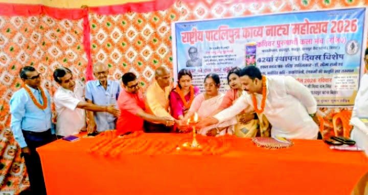 दानापुर : कविवर पुरुषार्थी कला मंच दाउदपुर शाहपुर दानापुर कैंट पटना बिहार के 42 वां स्थापना दिवस के अवसर पर राष्ट्रीय पाटलिपुत्र काव्य नाट्य तथा मासिक एकल काव्य एकल नाट्य का ग्यारहवां श्रृंखला सह सम्मान समारोह का आयोजन भगवती देवी सभागार श्री सिया राम सिंह यादव उच्च माध्यमिक विद्यालय शाहपुर दाउदपुर पटना के प्रांगण में वरिष्ठ साहित्यकार डॉ. दिलीप कुमार एवं शब्दांश पत्रिका के कार्यकारी सम्पादक कवि रूपक कुमार की संयुक्त अध्यक्षता में किया गया l दूर दराज से आये 35 ख्यातिलब्ध तथा नवोदित कवि, कवयित्रियों, रंगकर्मी से सुसज्जित कार्यक्रम का उद्घाटन नगर परिषद दानापुर की अध्यक्षा श्रीमती शिल्पी कुमारी एवं समाज सेवी युवा नेता धीरज कुमार ने सामूहिक रूप से दीप प्रज्ज्वलित कर किया l